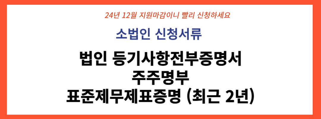 소 법인기업 신청서류 – 법인 등기사항전부증명서, 주주명부, 표준제무제표증명 (최근 2년)