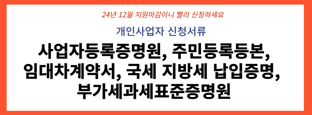 개인사업자 신청서류 – 사업자등록증명원, 주민등록등본, 임대차계약서, 국세 지방세 납입증명, 부가세과세표준중명원