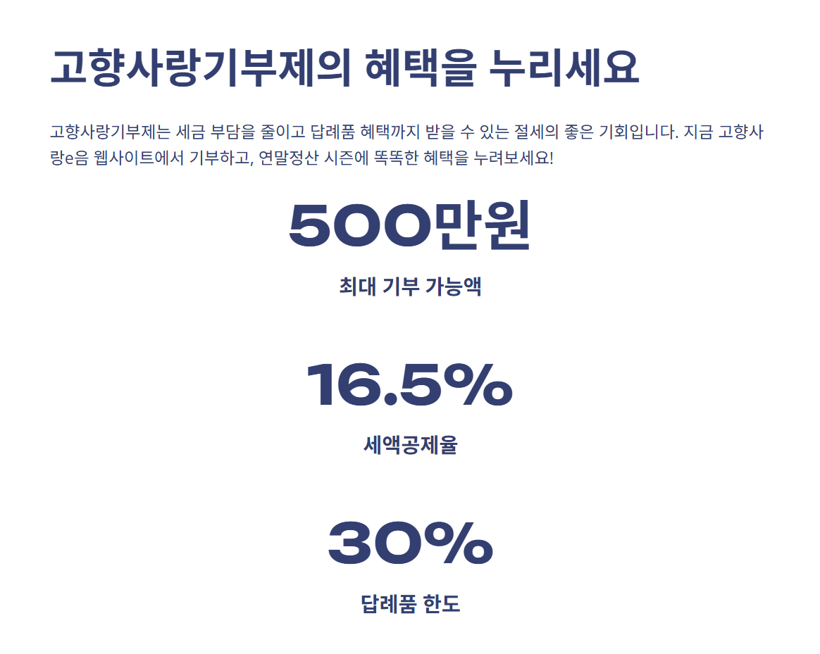 고향사랑기부금은 지정기부금으로 처리되기 때문에, 소득공제 항목을 충분히 활용하면 세금 부담을 더욱 줄일 수 있습니다.