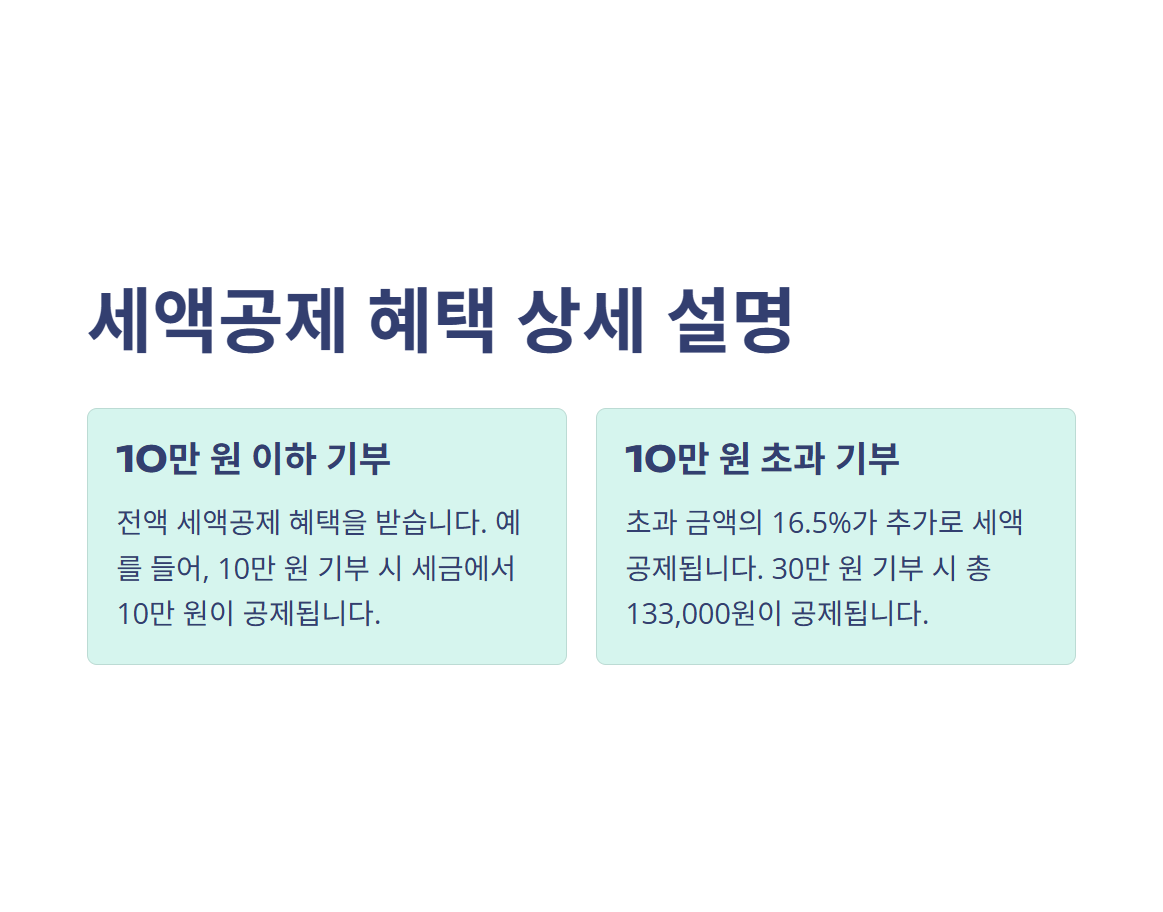 10만 원 이하의 기부금은 100% 세액공제가 가능하므로 부담 없이 시작할 수 있습니다.