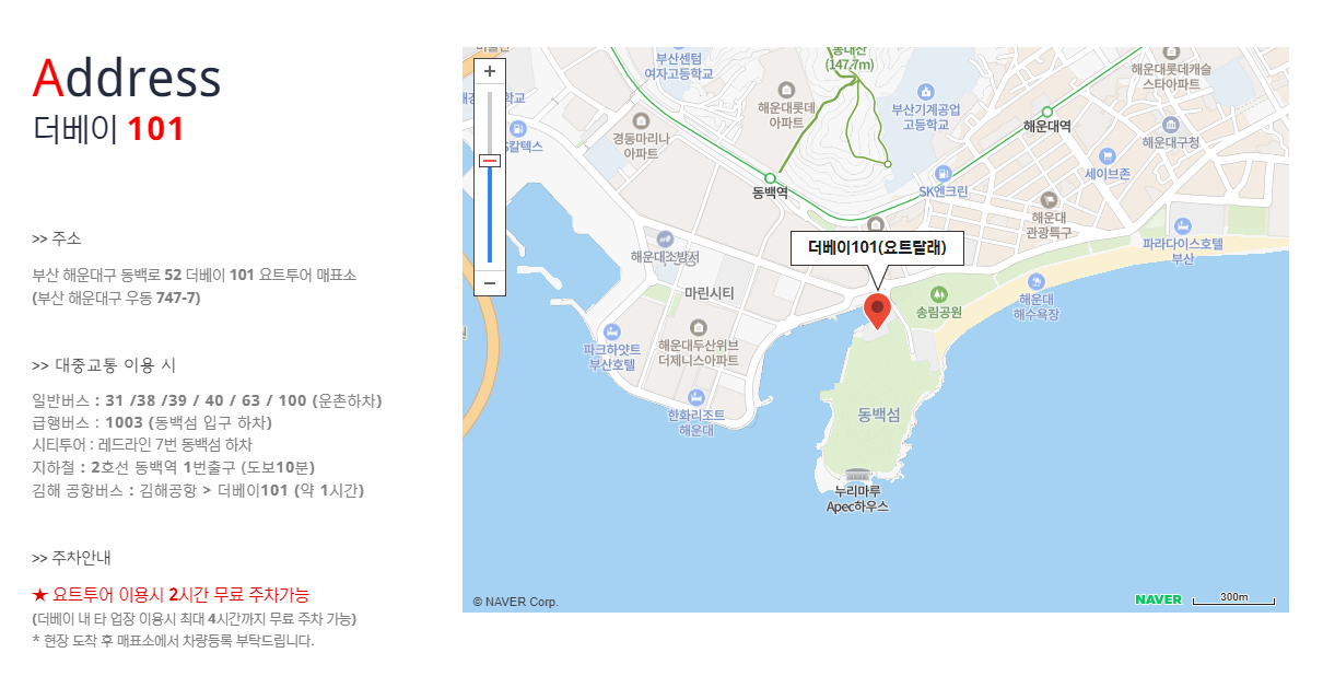 부산 해운대구 동백로 52 더베이 101 요트투어 매표소
