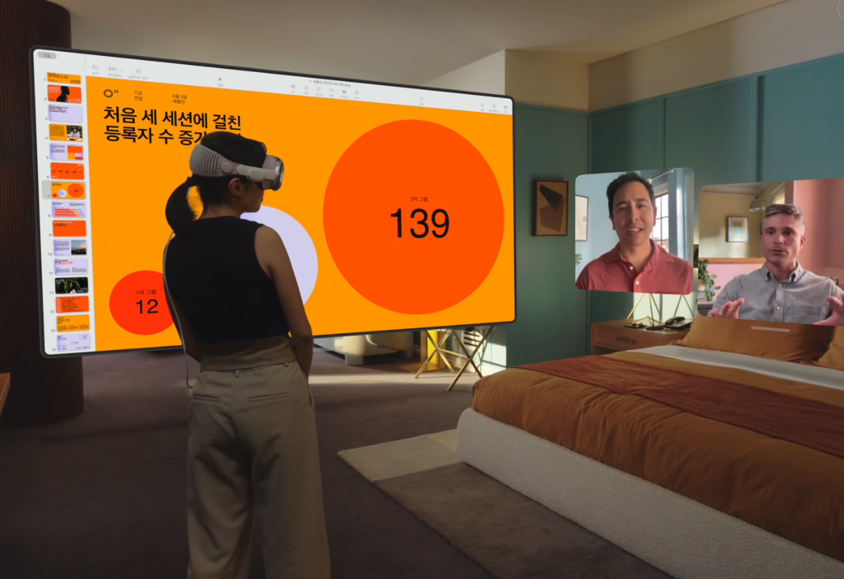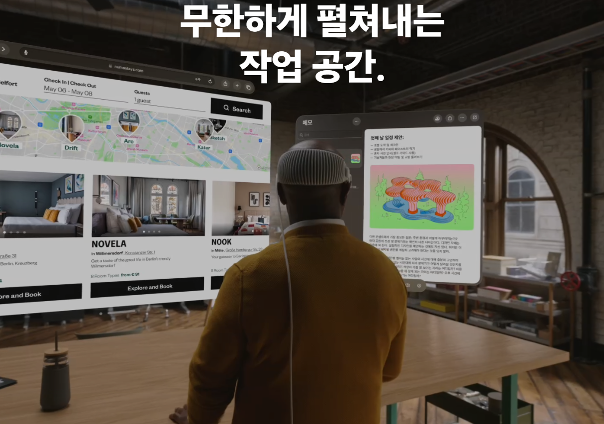 비전 프로는 VR보다 *‘고성능 노트북 + HMD’*에 가깝다는 인상을 주며, 웹브라우징, 유튜브 등 평면 콘텐츠에 최적화된 제품입니다.